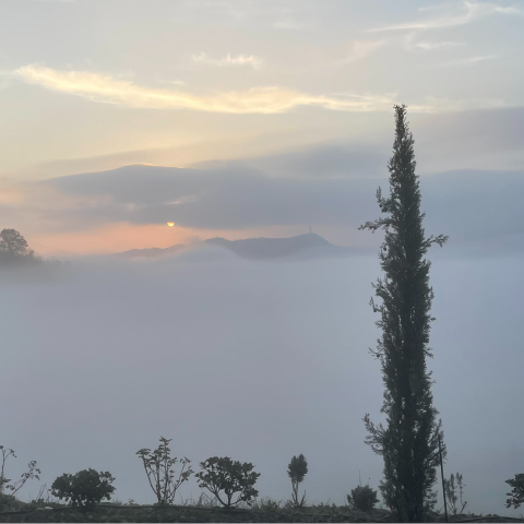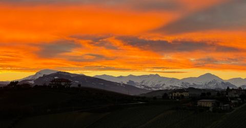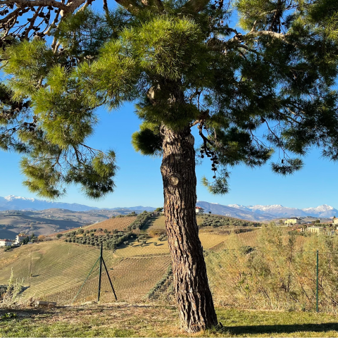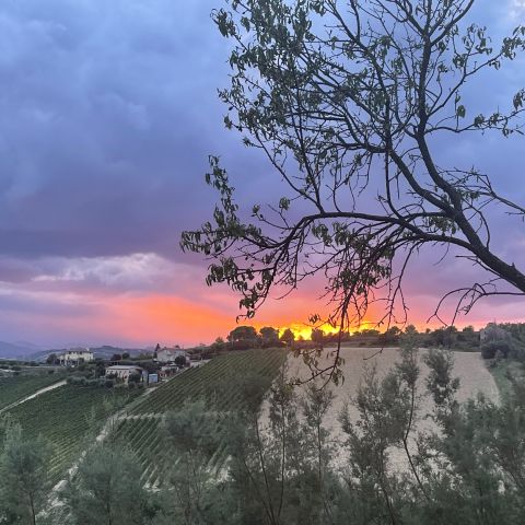 Wenn abends im Westen die Sonne hinter den Monti Sibillini untergeht, die große alte Pinie leise im Wind rauscht und Grillen und Zikaden singen, ist das pures Glück.
